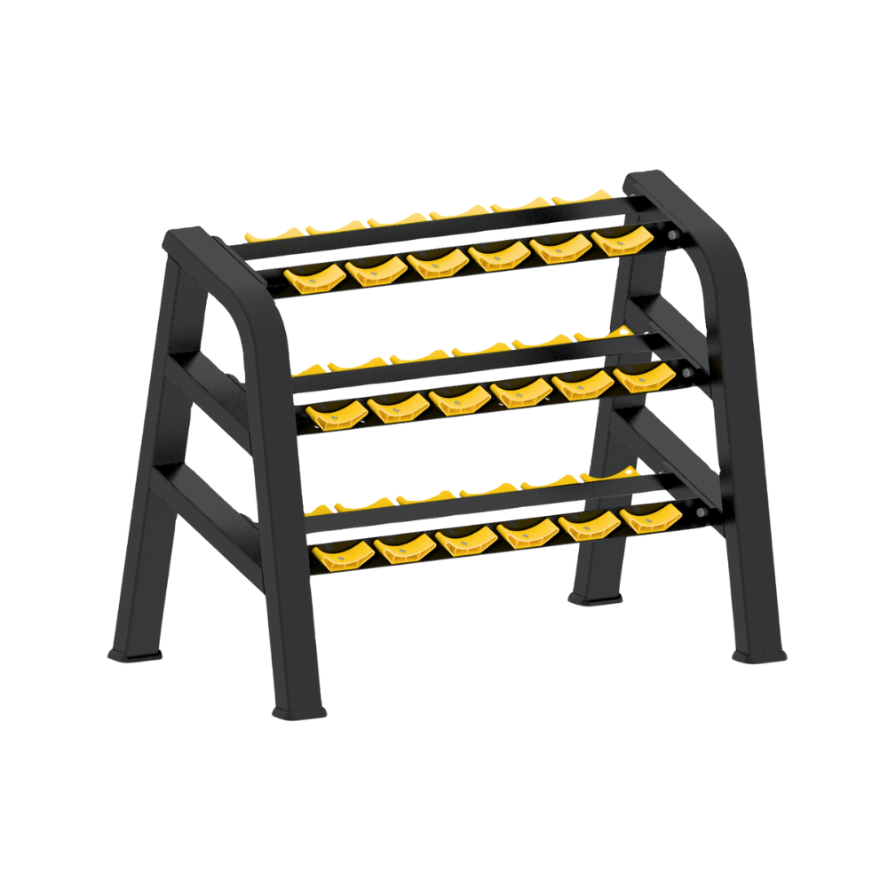 - Diseño: Estructura robusta con múltiples niveles para diferentes tamaños de mancuernas.